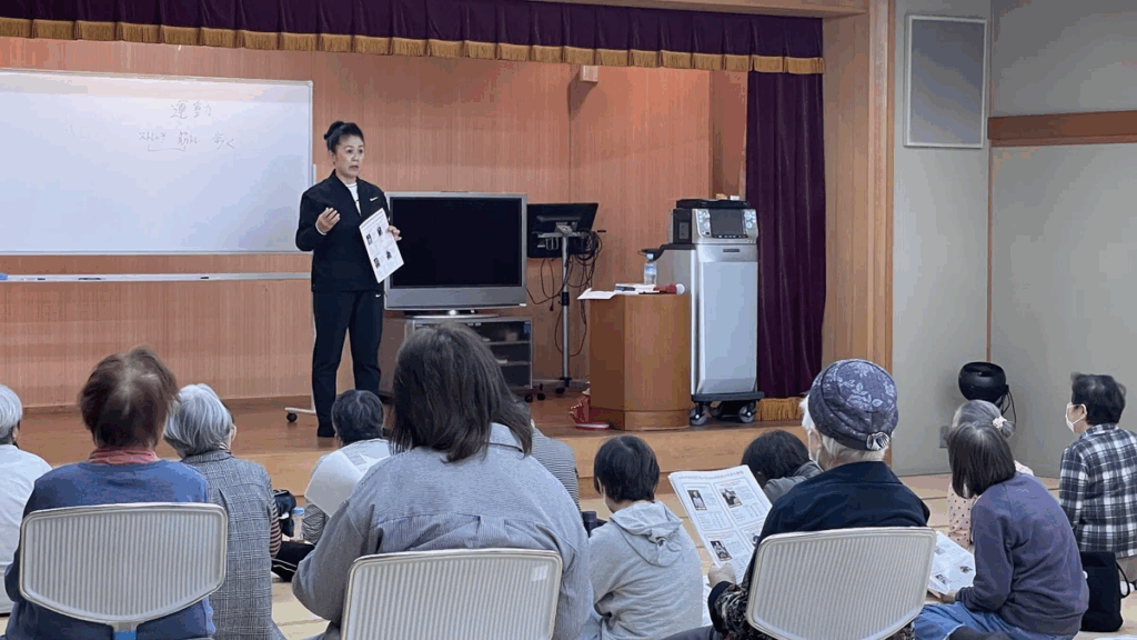 ⻄武信⽤⾦庫 幸町⽀店にて「仕事と介護の両⽴⽀援セミナー」を開催しました。高齢化が進む中、中小企業において課題となっている「介護離職防止」をテーマに、介護が突然始まるリスクや、従業員のパフォーマンス低下・離職につながる背景を解説。企業が早期に取り組むべき支援の考え方や、制度だけに頼らない実践的な予防視点についてお伝えし、行員の皆さまに今後の企業支援に活かせる内容を提供しました。 . ⻄武信⽤⾦庫 経営者ニューリーダー会にて「介護離職防⽌セミナー」を開催しました。⾼齢化が進む中、企業の⼈材定着に⼤きな影響を与える「介護離職」をテーマに、離職が起きる構造や現場で起こりやすい課題を解説。介護を理由とした離職は、突然の戦⼒喪失や組織⼒低下につながることから、経営者・リーダーが早期に知っておくべき視点や、制度だけに頼らない予防的な取り組みの重要性をお伝えしました。⼈材を守り、⻑く働き続けられる職場づくりを考える機会となりました。 . 株式会社錦中央⼯業様にて「健康経営の実践サポート」として社内プログラムを実施しました。現場で課題になりやすい腰痛対策として、⽇常業務の負担軽減と再発予防を⽬的に「腰痛改善運動」を実施。あわせて健康診断結果を活かすため、数値の⾒⽅と改善の優先順位、忙しくても続けやすい⾷事の整え⽅など、実践的な栄養指導を⾏いました。従業員の不調予防と健康習慣づくりを通じ、働きやすい職場づくりに貢献しました。 . 熊本県内の4つの介護事業所にて「イキイキFit. 指導者育成プログラム」を開催しました。本プログラムでは、介護現場で求められる安全性と効果の両⽴を重視し、⾼齢者の⾃⽴⽀援・介護予防を⽬的とした運動指導の基本を習得。現場ですぐに活⽤できる運動の伝え⽅や声かけ、継続につなげる⼯夫を実践的に学んでいただきました。職員の指導⼒向上を通じて、利⽤者の⽣活動作改善とQOL向上を⽬指す取り組みとなりました。 . 地域貢献事業として、当社は「地域の⾼校⽣と連携し⾼齢者を対象とした介護予防運動指導」を実践しました。⾼校⽣が運動指導のサポート役として参加し、世代を超えた交流の中で、⾝体を動かす楽しさと継続の⼤切さを共有。⾼齢者にとっては、無理なく安全に取り組める介護予防の機会となり、⾼校⽣にとっては⾼齢者理解や地域とのつながりを学ぶ実践の場となりました。世代間交流を通じて、地域全体の健康づくりと学びに貢献する取り組みとなりました。 . ⼤橋運輸株式会社様が主催する市⺠貢献事業にて「セミナー講師」を務めました。愛知県内で健康経営と地域⽀援に積極的に取り組む同社の活動の⼀環として、地域住⺠の健康づくりと介護予防をテーマに実践的な内容を提供。⽇常⽣活に取り⼊れやすい運動や健康習慣の考え⽅を伝え、参加者が⾃分の⾝体と向き合うきっかけづくりを⾏いました。企業が地域と共に健康を⽀えるモデルケースとなる取り組みです。 . ⽴川市市⺠交流⼤学の企画にて「認知症予防と運動と⾷事」をテーマとした全4 回セミナーの講師を受託しました。本セミナーでは、認知症予防の基本的な考え⽅を軸に、⽇常⽣活に無理なく取り⼊れられる運動と⾷事の⼯夫を分かりやすく解説。参加者が⾃分の⾝体と⽣活習慣を⾒直し、継続的な健康づくりにつなげることを⽬的とした実践的な内容を提供しました。地域住⺠の健康意識向上と介護予防に貢献する取り組みとなりました。 . ⽴川市⺠活動団体と⽴川市後援のもと「介護予防と認知症」セミナーを受託・開催しました。⾼齢化が進む地域において関⼼の⾼い介護予防と認知症をテーマに、予防の基本的な考え⽅や、⽇常⽣活の中で実践できる運動・⽣活習慣の⼯夫について分かりやすく解説。参加者が⾃分⾃⾝や家族の将来を考え、早めに⾏動するきっかけづくりを⽬的とした内容を提供しました。地域住⺠の不安軽減と健康意識向上に貢献する取り組みとなりました。 . ⽴川市内の東急グランレールにて「膝痛を改善する運動とは」をテーマにセミナー講師を務めました。膝痛が起こる主な原因や、⽇常⽣活の動作が膝に与える影響を分かりやすく解説し、痛みを悪化させない⾝体の使い⽅や、⾃宅で安全に取り組める運動を実践形式で紹介。参加者が「できることから始められる」内容を重視し、膝の不安を軽減しながら、いつまでも歩ける⾝体づくりを⽬指すきっかけとなるセミナーとなりました。
