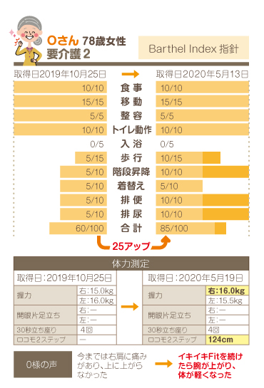 ご自宅でも実践した方は、日常生活動作が大きく変わりました。(バーセルインデックス)